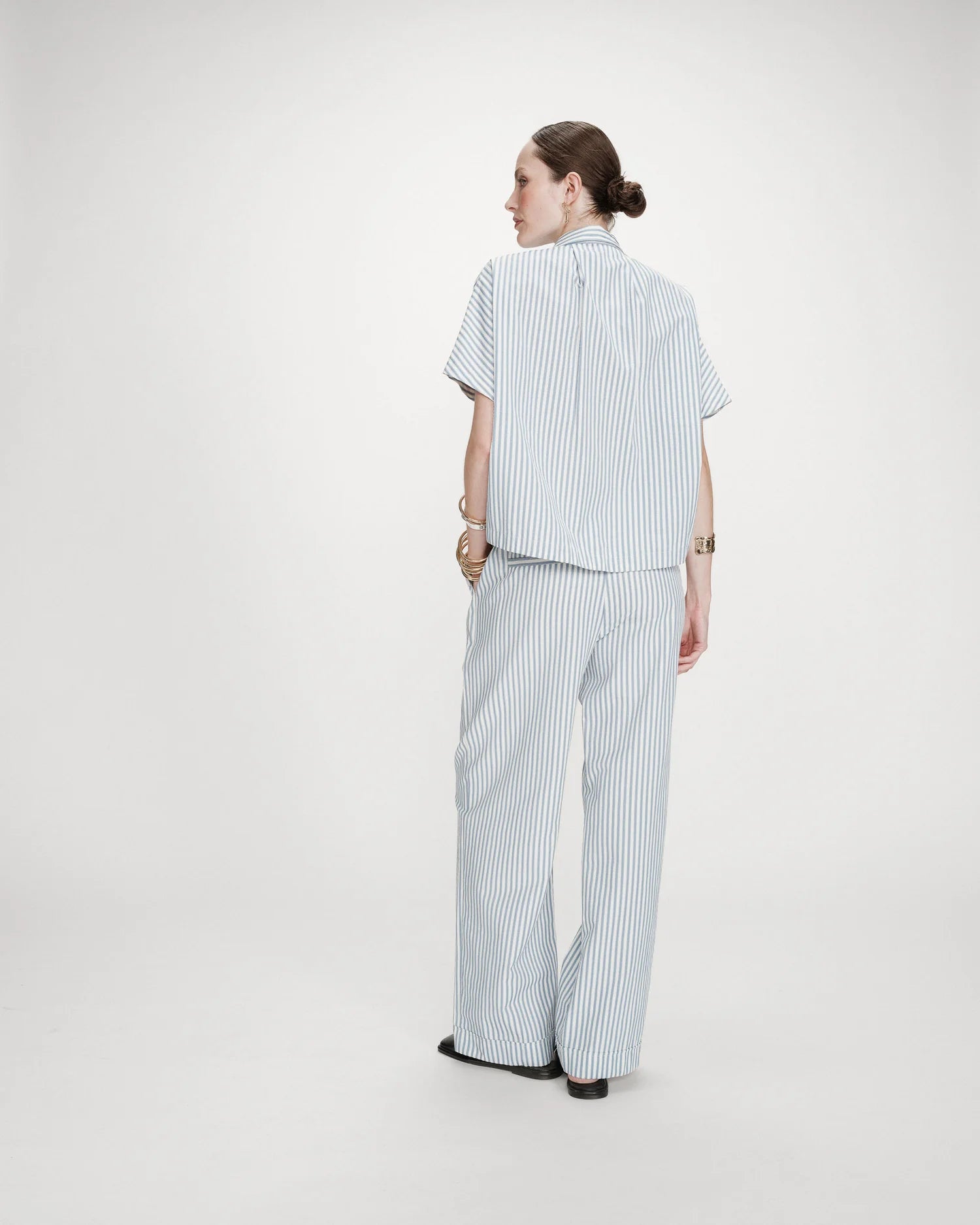 La camisa VERCIA a rayas presenta un corte amplio con mangas cortas. Su cuello clásico y el bolsillo de parche en el pecho izquierdo la convierten en una prenda imprescindible en tu armario. El estilo VERCIA oversize ofrece un look tendencia y relajado.
