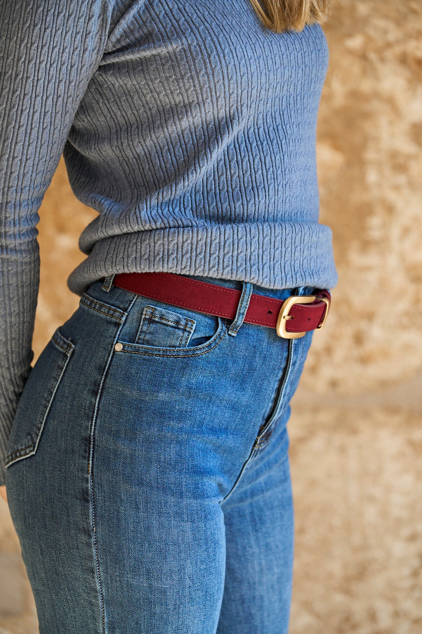Cinturó de pell girada bordeus – Un bàsic amb estil